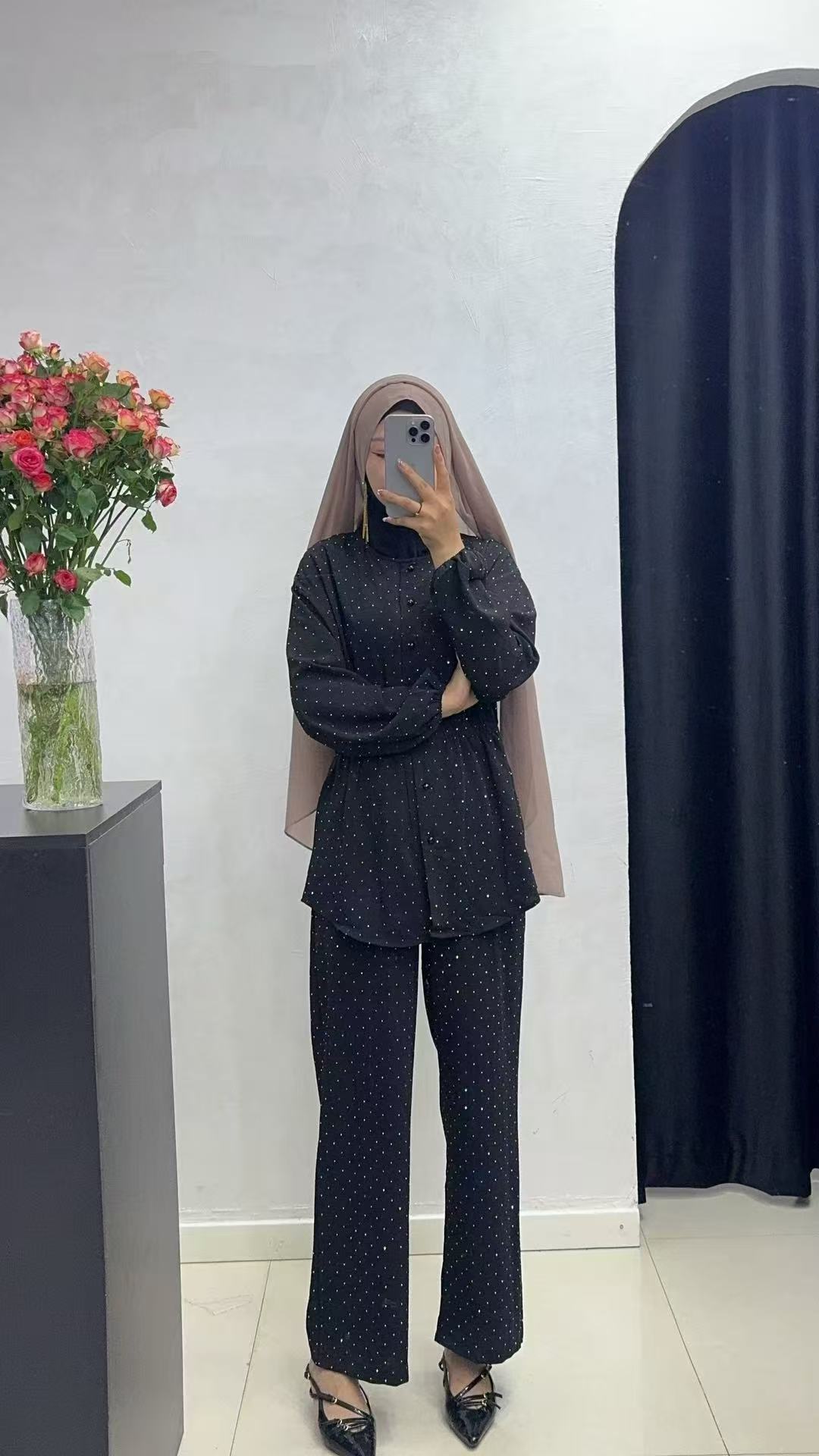 Rhinestone detailing: Adds a touch of elegance and luxury to the outfit.
