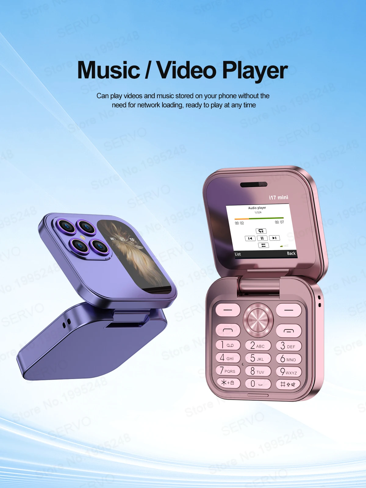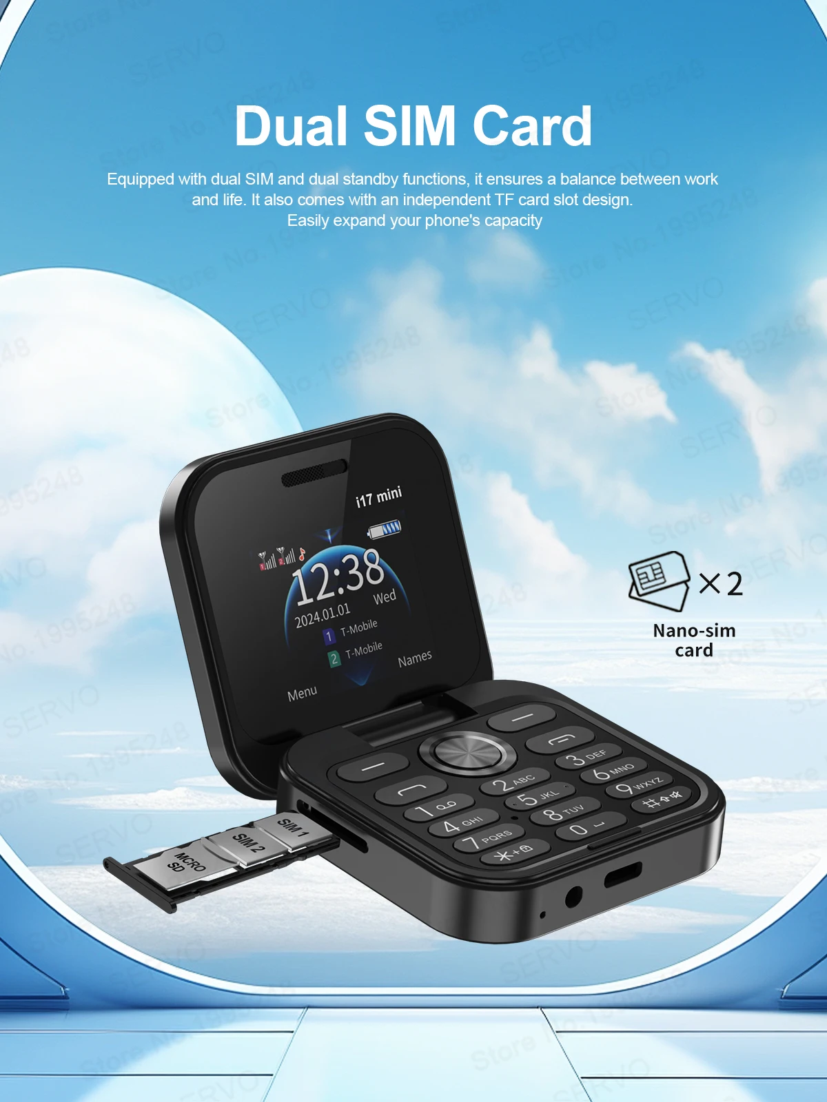 SERVO i17 Mini Small Flip Mobile Phone 1.77" Screen Blacklist Speed Dial Magic Voice FM Radio Cute Box Cellphones 2 SIM Standby