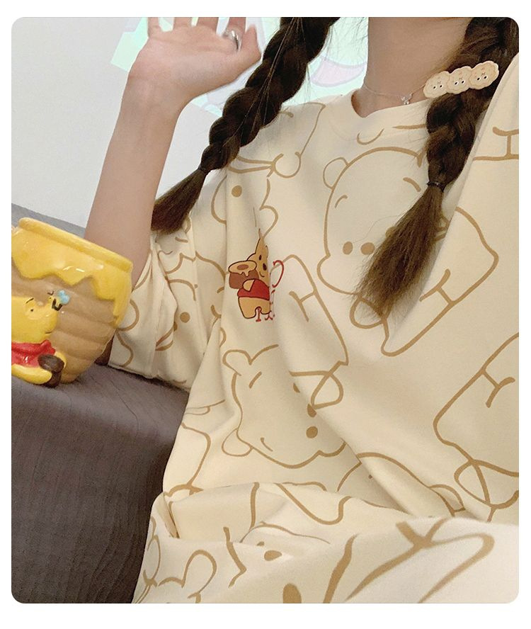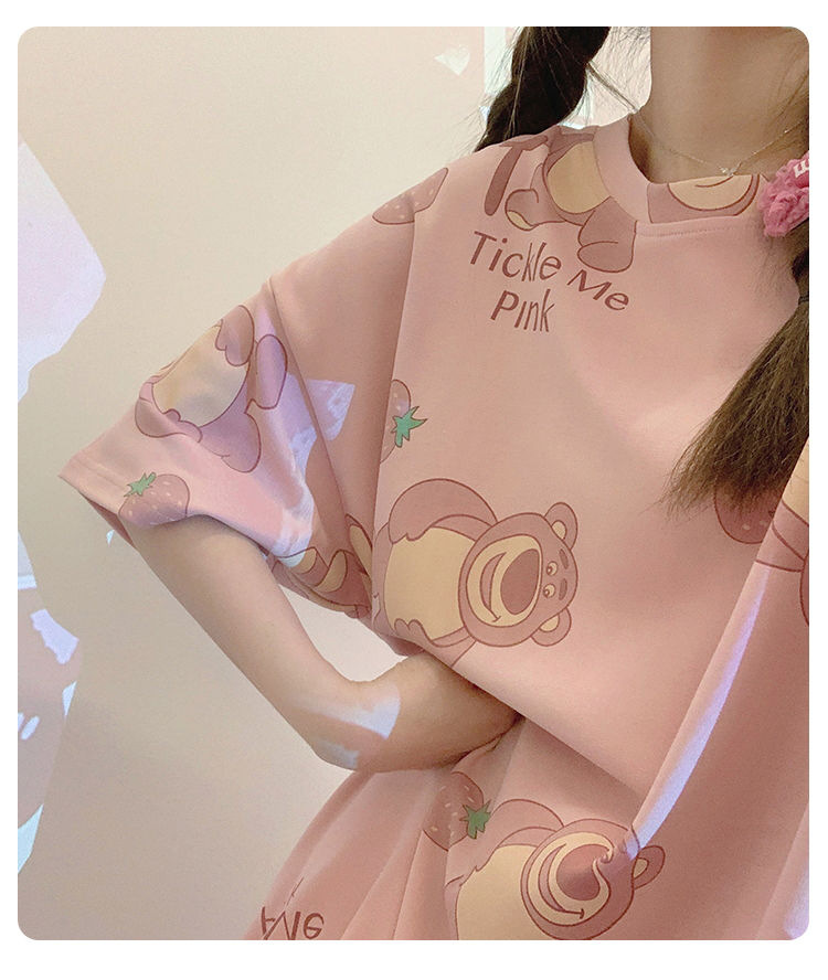 - Versatile Design: Sweet and cute style with round neck and half-length sleeves, suitable for casual, sleep, and home wear.