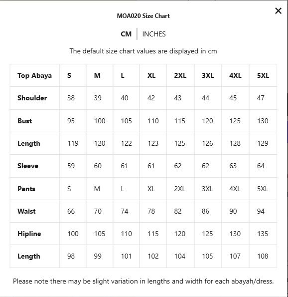 Slim Fit: Designed to enhance the silhouette, offering a flattering and modest appearance.
