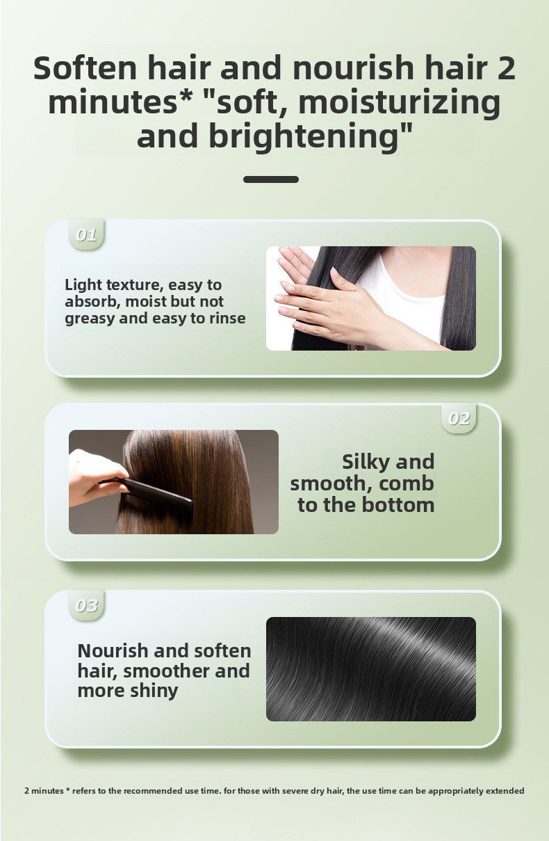 Nourishing & Moisturizing?Contains various nourishing and moisturizing ingredients. They work together to provide comprehensive care for the hair, replenishing water and nutrients, preventing hair dryness and frizz, and making the hair soft and smooth.