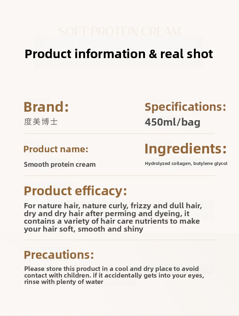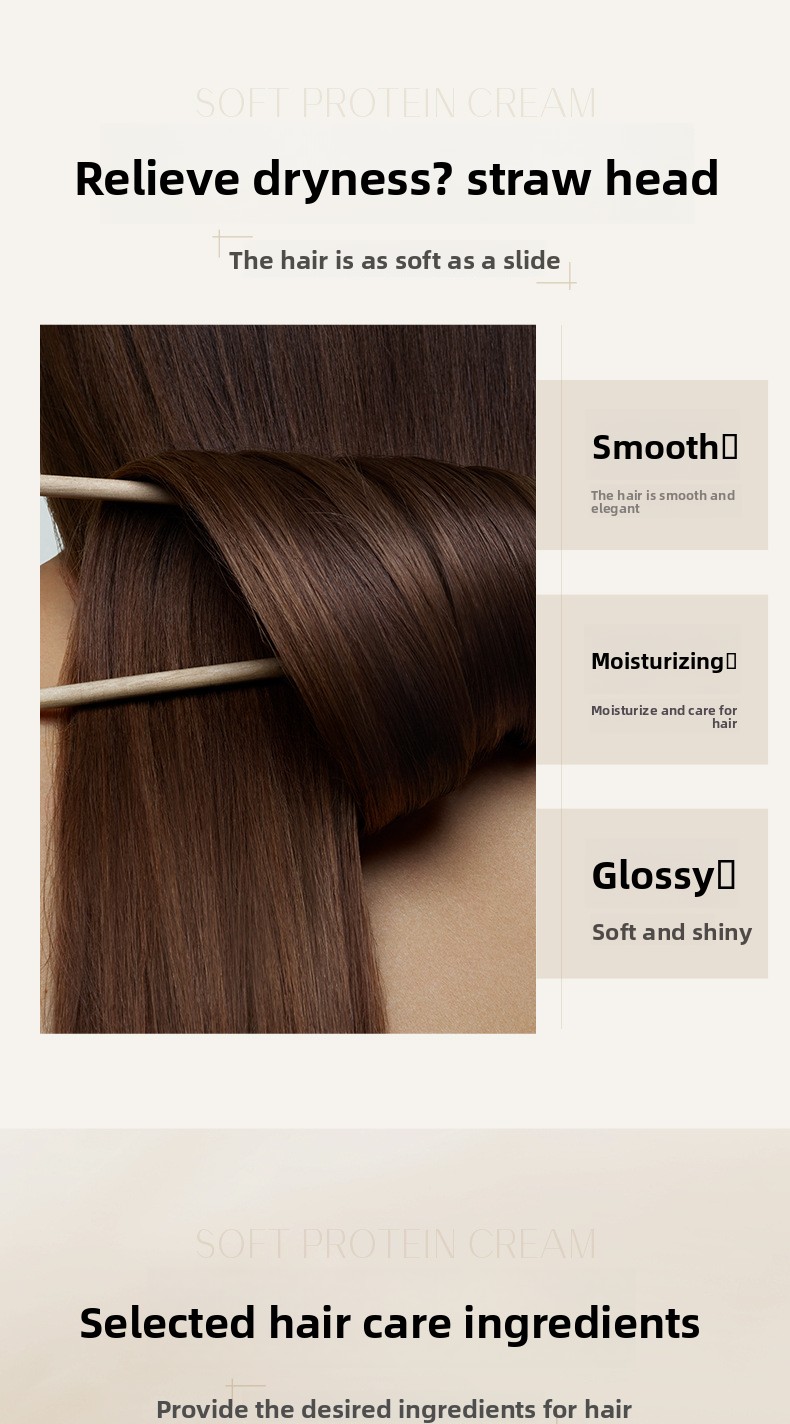 Smoothing Protein Cream: Enriched with keratin and LPP for deep hair repair and smoothness.