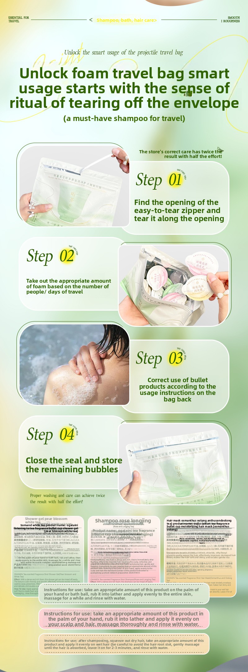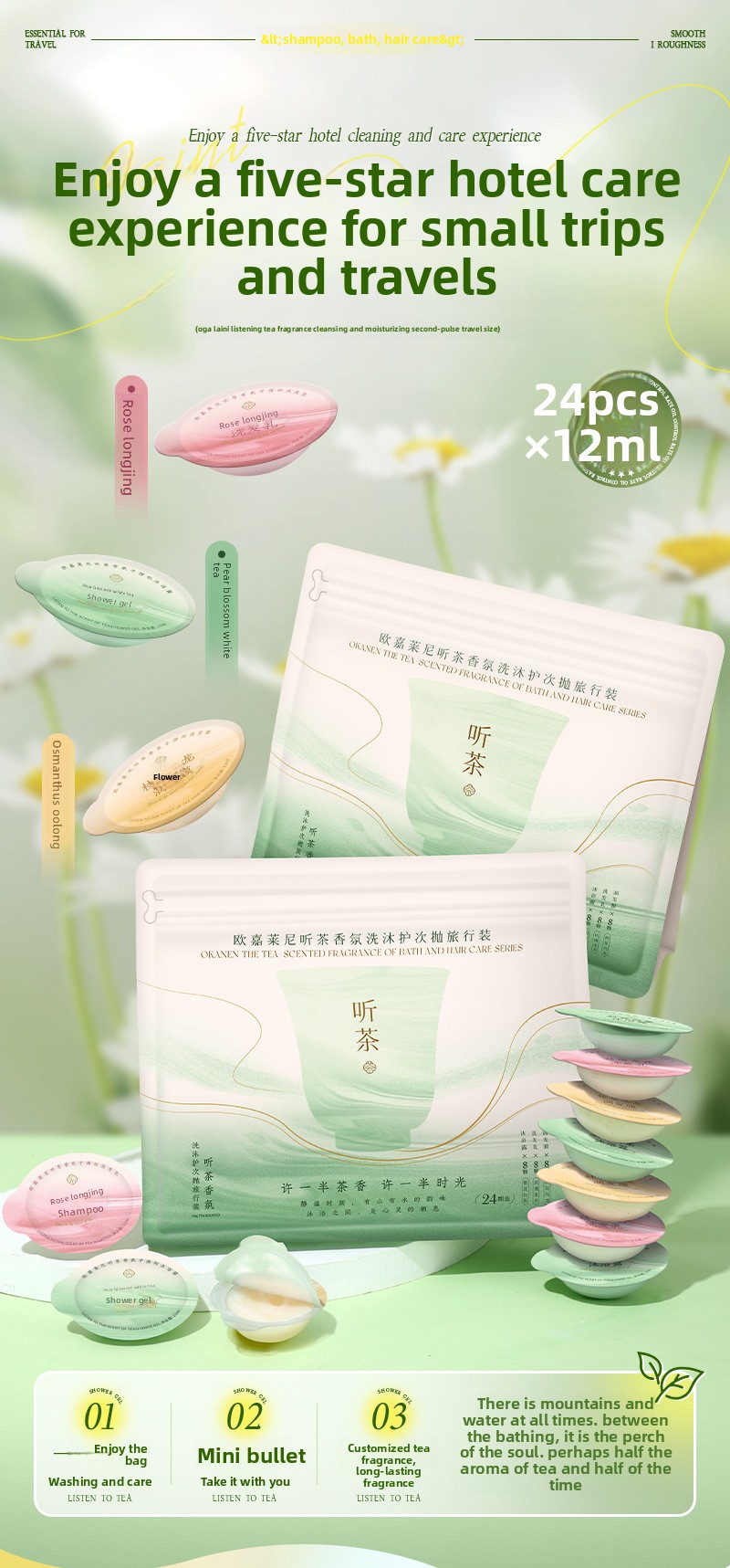 Tea fragrance bath and body care set for travel packing
