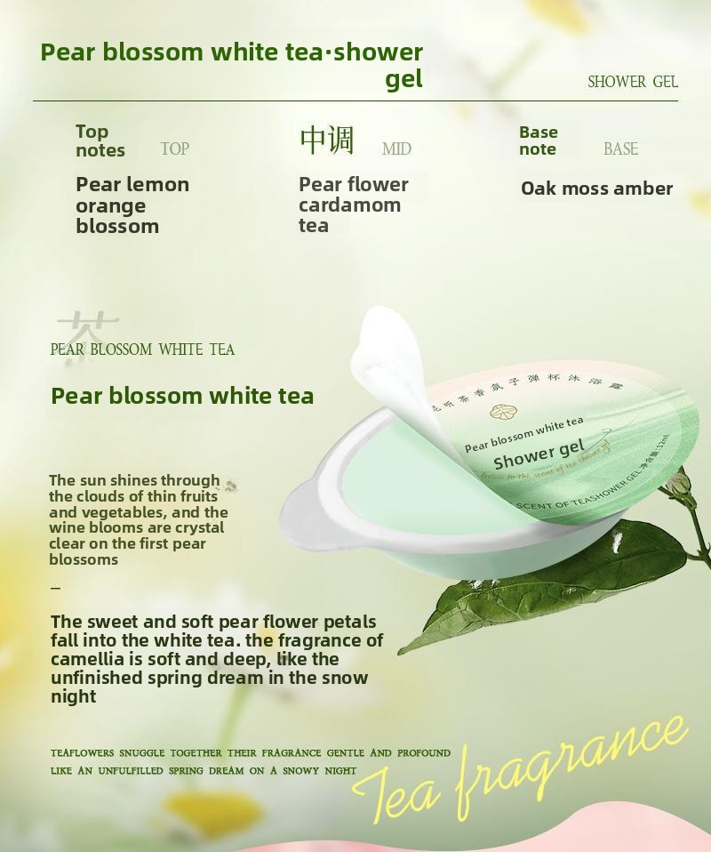 Fragrance: Features a floral tea scent for a refreshing experience.