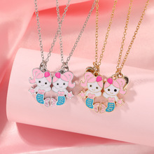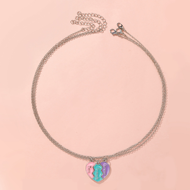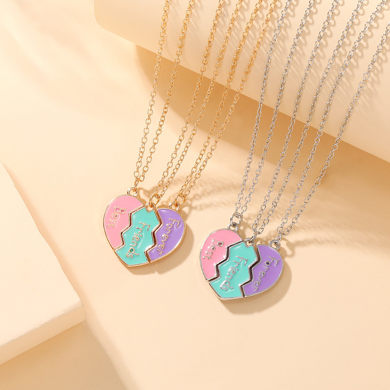 Temu cross-border European and American fashion personality best friends love stitching good friends girlfriends pendant set chain