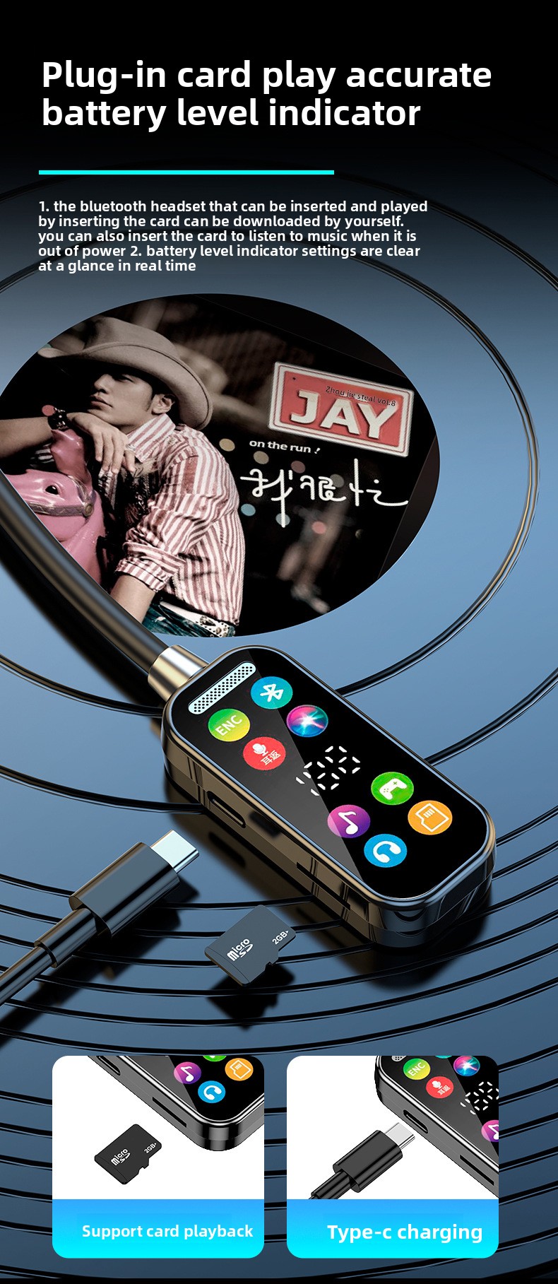 Wireless Bluetooth Headset with Color Screen