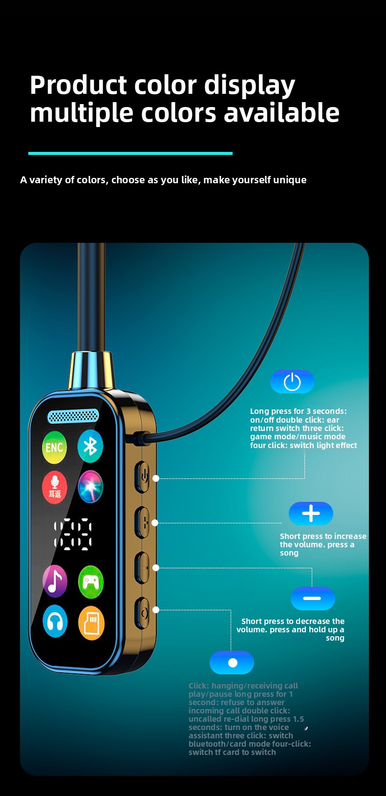 Neck-Hanging Design: Comfortable and convenient neck-hanging style for extended wear.